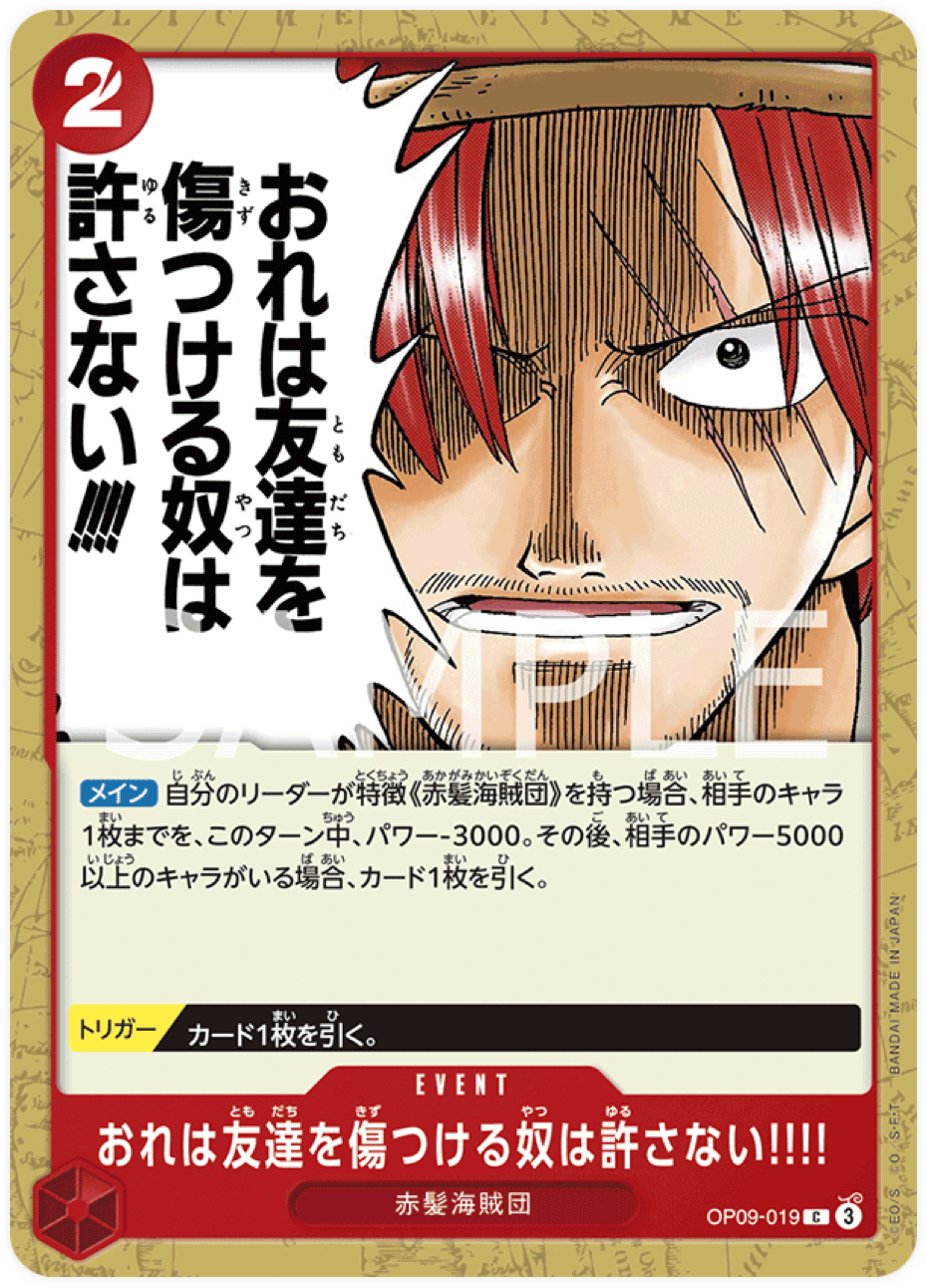 • Piocher une carte si un personnage adverse de 5000 points ou plus est en jeu.