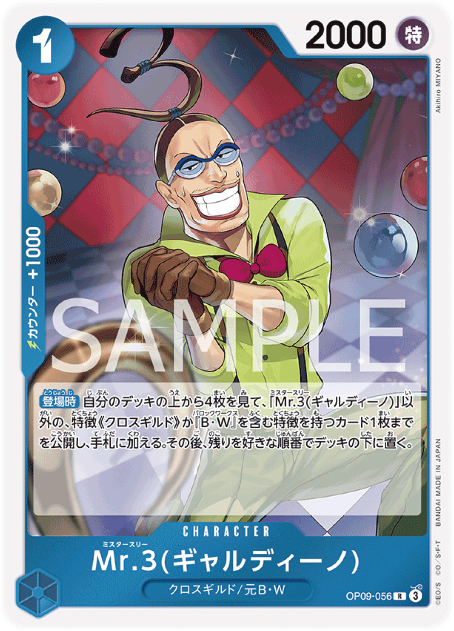 Akihiro Miyano est reconnu pour son style qui mélange humour et détail, parfait pour illustrer un personnage aussi excentrique que Mr. 3. Miyano sait capturer l’essence unique des personnages de One Piece, leur donnant vie à travers des expressions vives et des décors colorés qui enrichissent l’univers visuel de chaque carte.